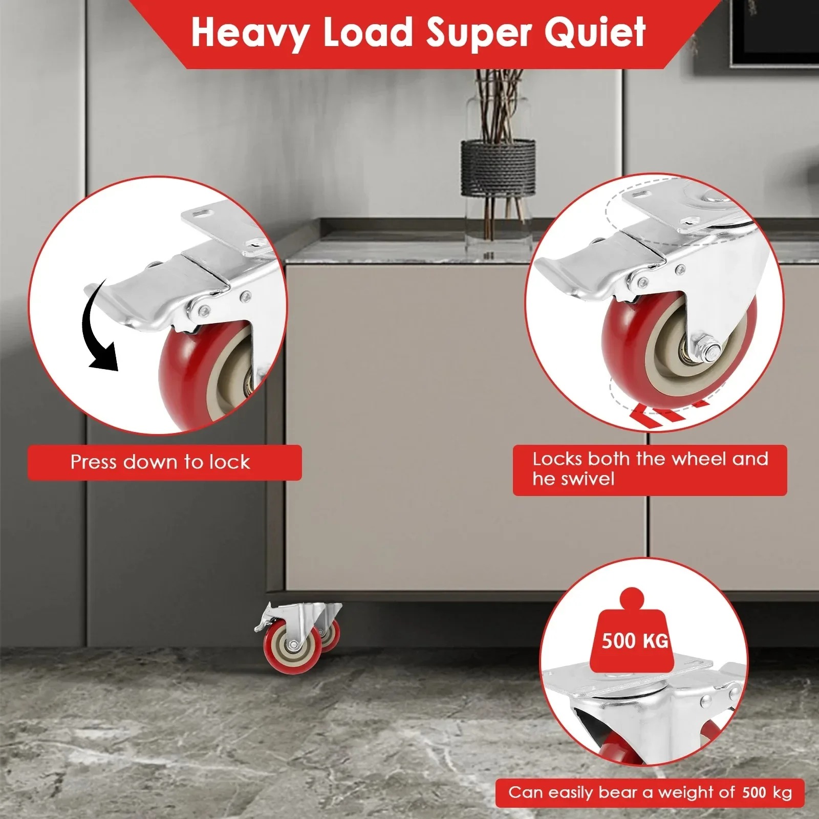 [500kg Load Capacity] This set of 4 casters is made of sturdy steel with double bearings and can easily hold 500 kg.