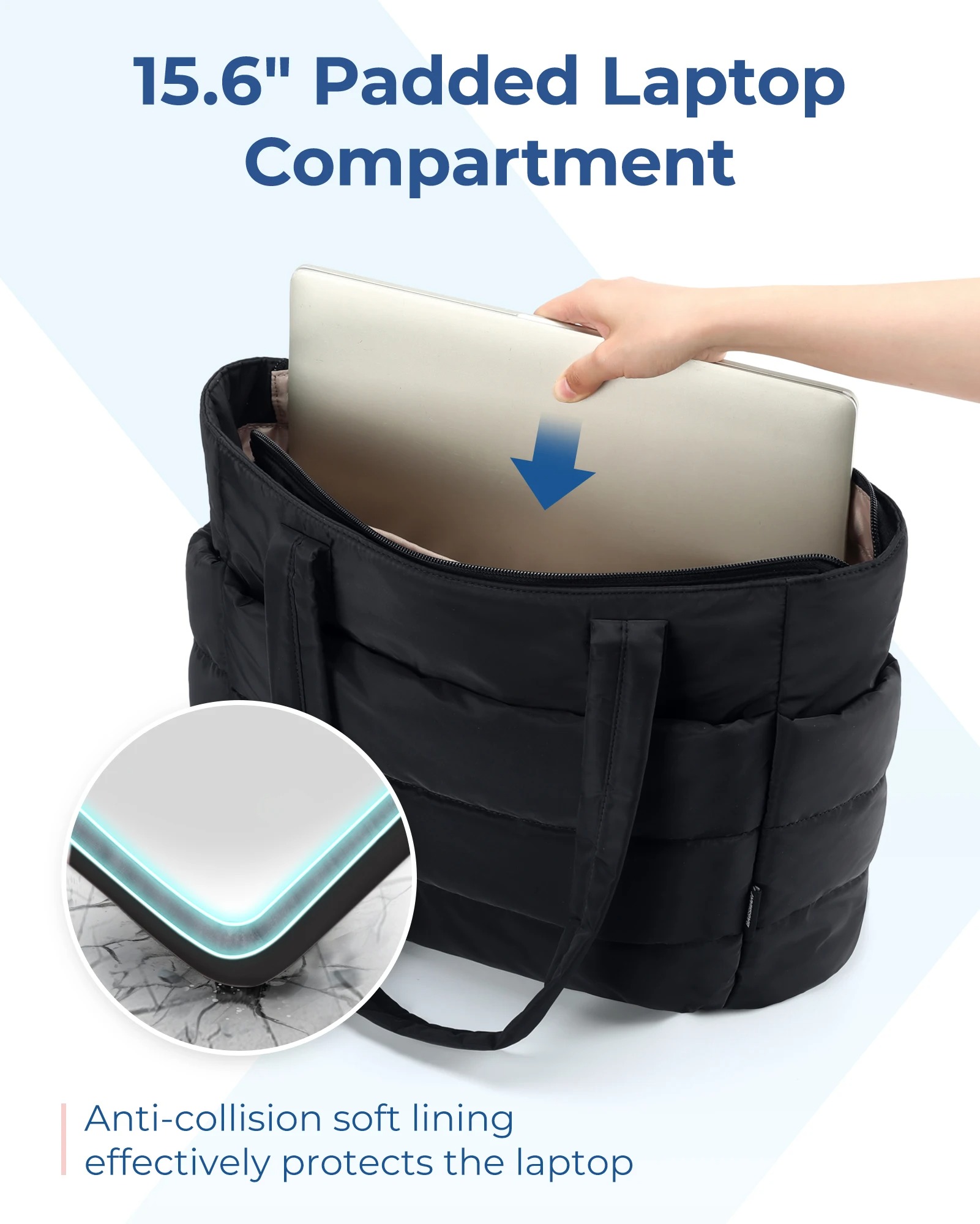 Stay organized and stylish with the BAGSMART Puffy Tote Bag. Designed for modern women on the go, this spacious, padded tote makes commuting, travel, or running errands effortless. Its soft, quilted exterior provides a trendy look while protecting your belongings. With multiple compartments, including a padded laptop sleeve and quick-access pockets, everything has its place — from your laptop and wallet to baby essentials or gym gear. Lightweight yet durable, it’s perfect for work, leisure, or mommy duties. Upgrade your daily carry with comfort, style, and practicality.