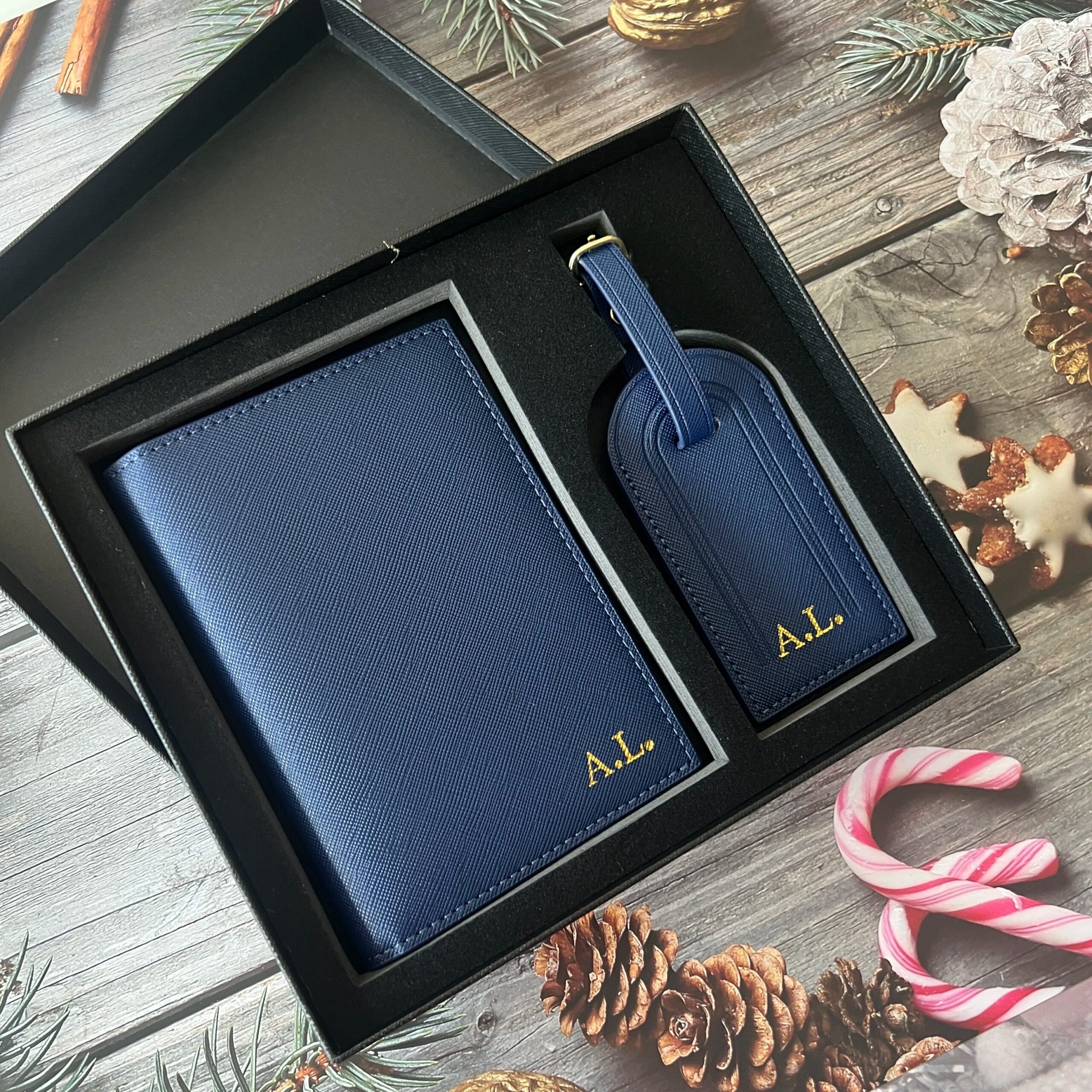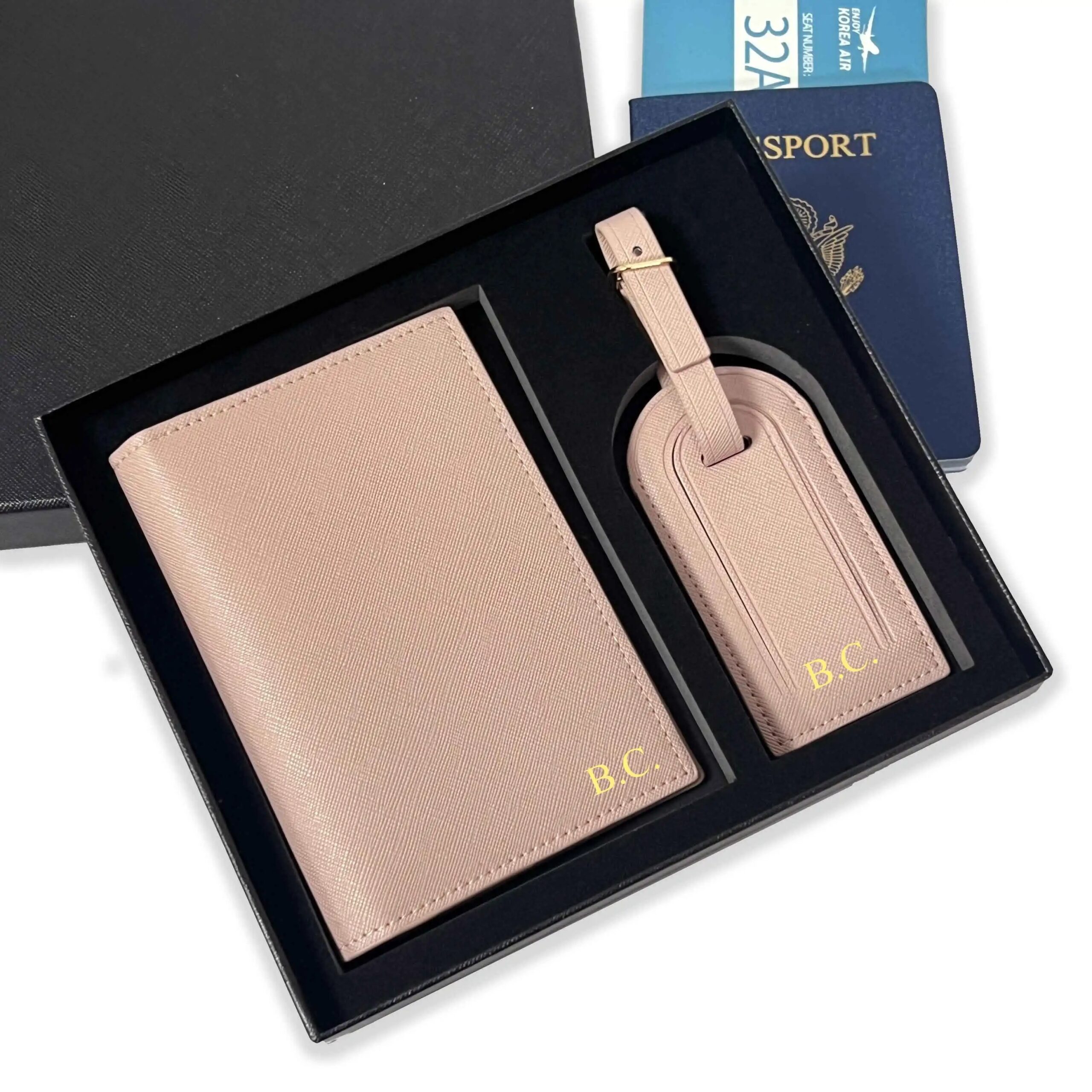 This customizable travel set includes a passport cover and matching luggage tag, designed to make your travel experience easier and more stylish. You can add your name or initials, giving your items a personal touch and making them easy to identify during your journey.
