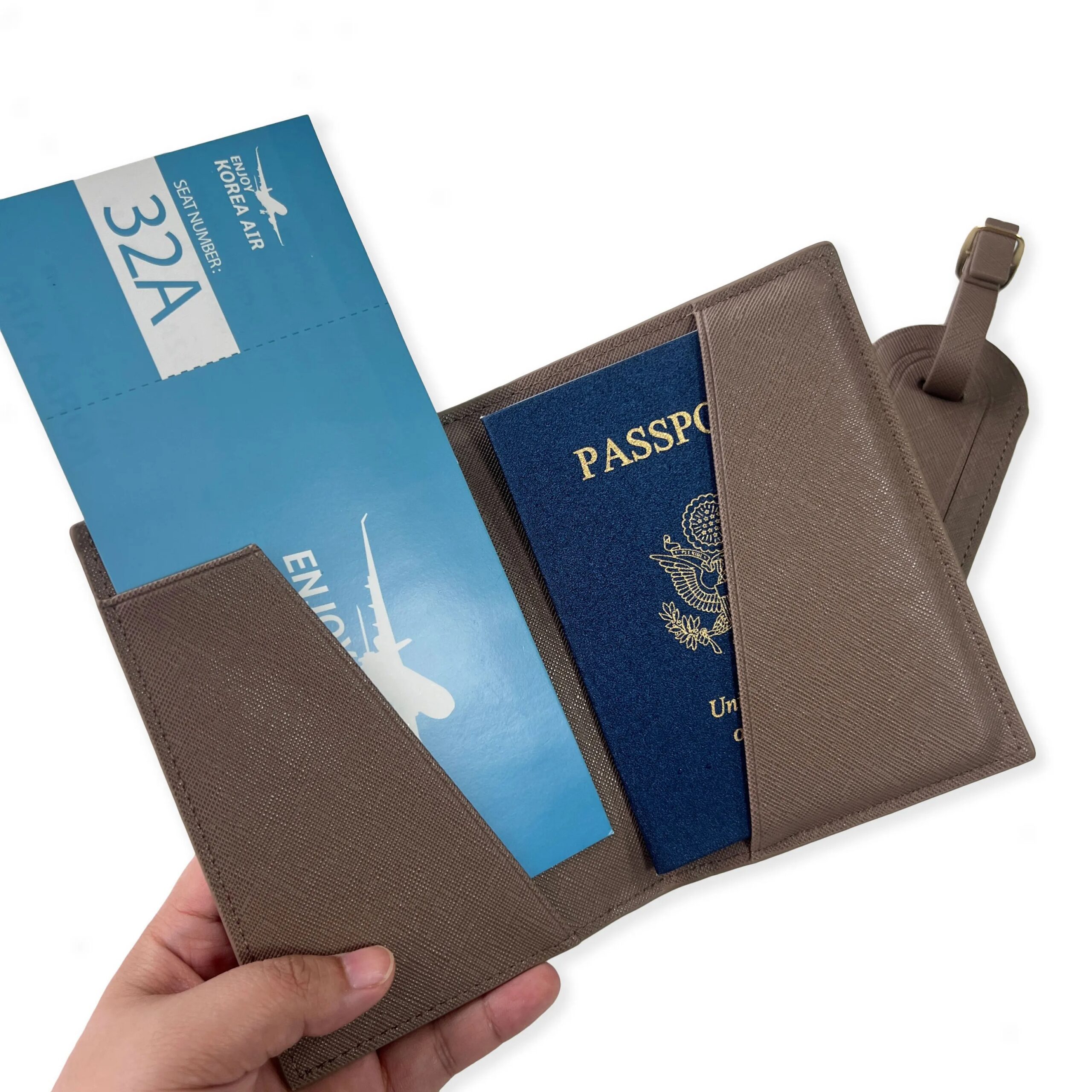 Made from lightweight, durable material, the passport holder keeps your documents protected, while the suitcase tag helps you spot your luggage quickly at the airport. It’s a practical and stylish accessory set for vacations, business trips, or thoughtful gifting.