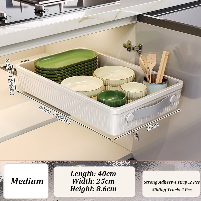 Kitchen Sliding Drawer with Slide Rail Cabinet Clothes Spice Dish Bowl Storage Rack Pull Out Cabinet Organizer Tray With Handle