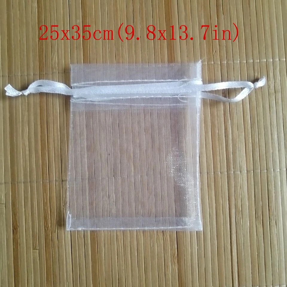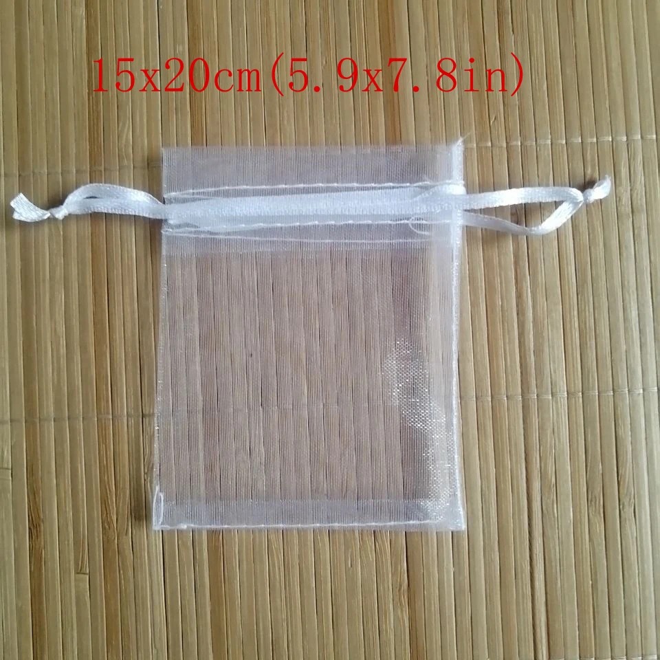 • Elegant Design: White organza with drawstring closure for a classy look.